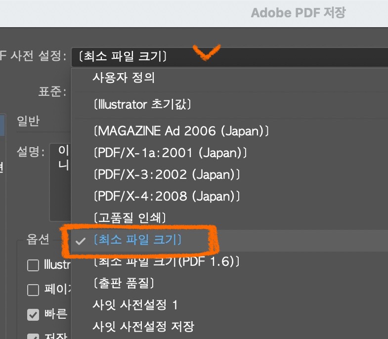 일러스트레이터 PDF저장 용량 낮추기