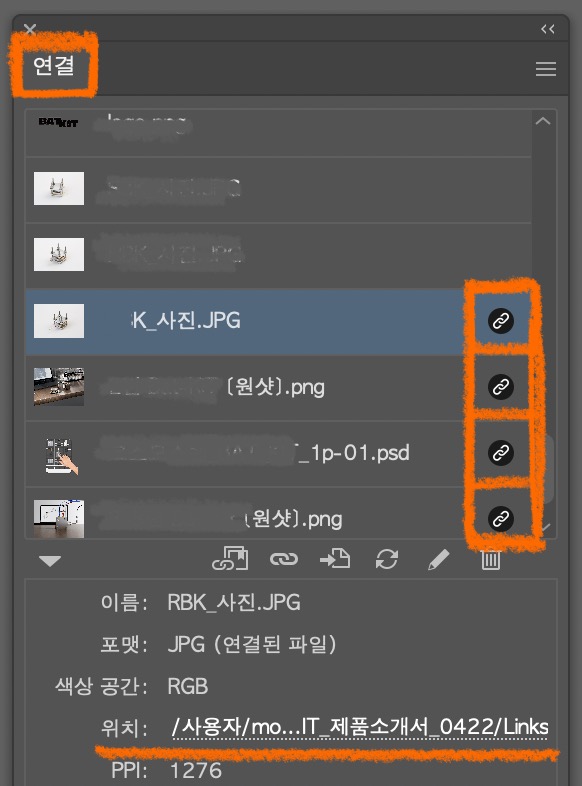 (-> 링크해놓은 파일은 링크끼리 묶어두거나, 링크 수정이 끝났다면 링크를 해제해줘야 해요)